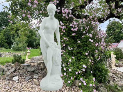 Rozměry: výška 139 cm, váha 159 kg. Garantujeme dodání v nepoškozeném stavu. Materiál: umělý bílý mramor. Doporučujeme impregnaci. socha je vyrobená v ČR z kvalitního umělého bílého mramoru ruční metoda výroby sochy pro dokonalou kresbu detailní zpracování a estetický matný bílý povrch krásná socha na zahradu i do domu velmi dlouhá životnost mramorové sochy