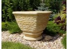 kamenný květináč z umělého pískovce vyrobené v ČR z kvalitního umělého pískovce unikátní ruční metoda výroby pro dokonalou kresbu detailní zpracování a hezké probarvení krásná dekorace na zahradu výška 18 cm, váha 18 kg, průměr vnější 34 cm, průměr vnitřní 26 cm