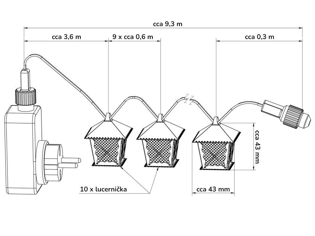 Každá sada obsahuje 10 lucerniček - světýlka bílá, a jsou napájena bezpečným 12V adaptérem. Pokud chcete na svůj stromeček umístit více sad, nemusíte si dělat starosti s rozdvojkami. Sady lucerniček lze propojit až tři na jeden adaptér, takže je vše snadné a přehledné.