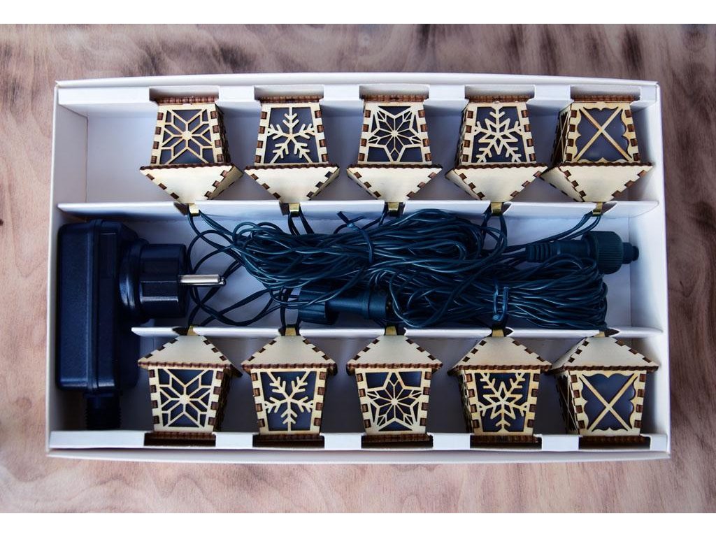 vánoční světýlka bílá, dřevěné lucerničky s led světlem - 10 ks