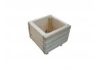 Dřevěný truhlík vyrobený ze smrkového dřeva, impregnovaný (dřevo je namočené v bezbarvém přípravku proti hnilobě a hmyzu.)