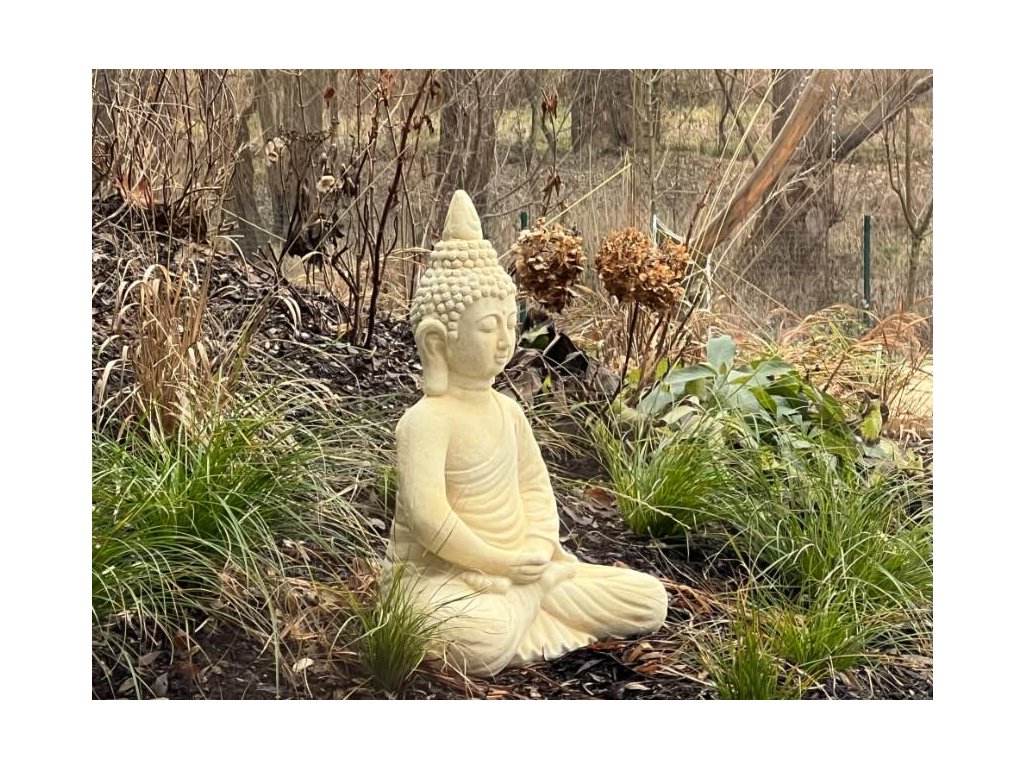 Buddha se spojenými dlaněmi je ideální jako socha na zahradu, k jezírku, na terasu nebo do klidného zákoutí pod stromy. Díky odolnému umělému pískovci zvládá celoroční venkovní umístění a působí přirozeně jak v moderní zahradě, tak v romantickém prostředí nebo v zámeckém parku. Skvěle doplní i meditační prostor, kam přináší symboliku duchovní cesty a soustředění. Tato socha není jen dekorace – je to tichý průvodce vnitřním světem.