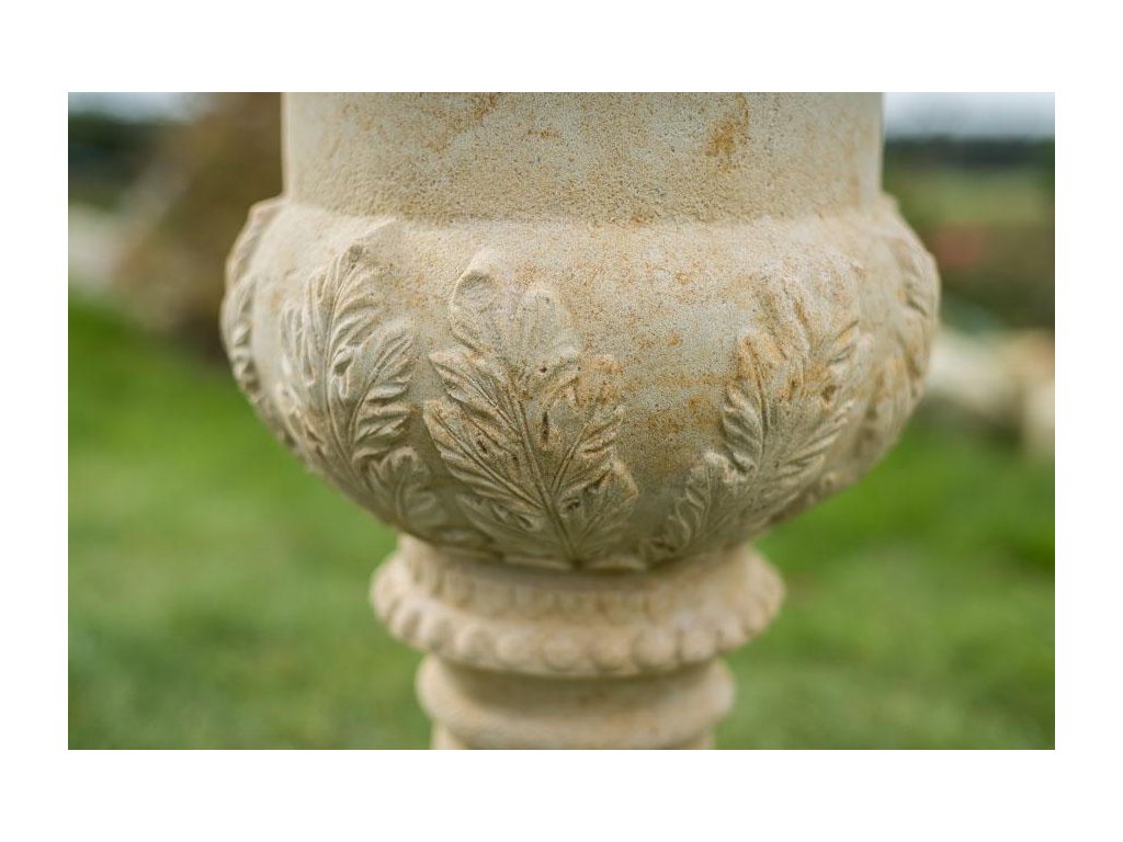 zahradní váza na noze s reliéfem, výška 78 cm, 70 kg